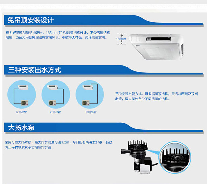 格力(GREE) C1系列变频风管机 家用中央空调一拖一 暗藏式冷暖双用 1.5/2/3匹