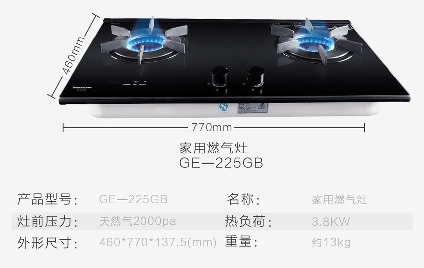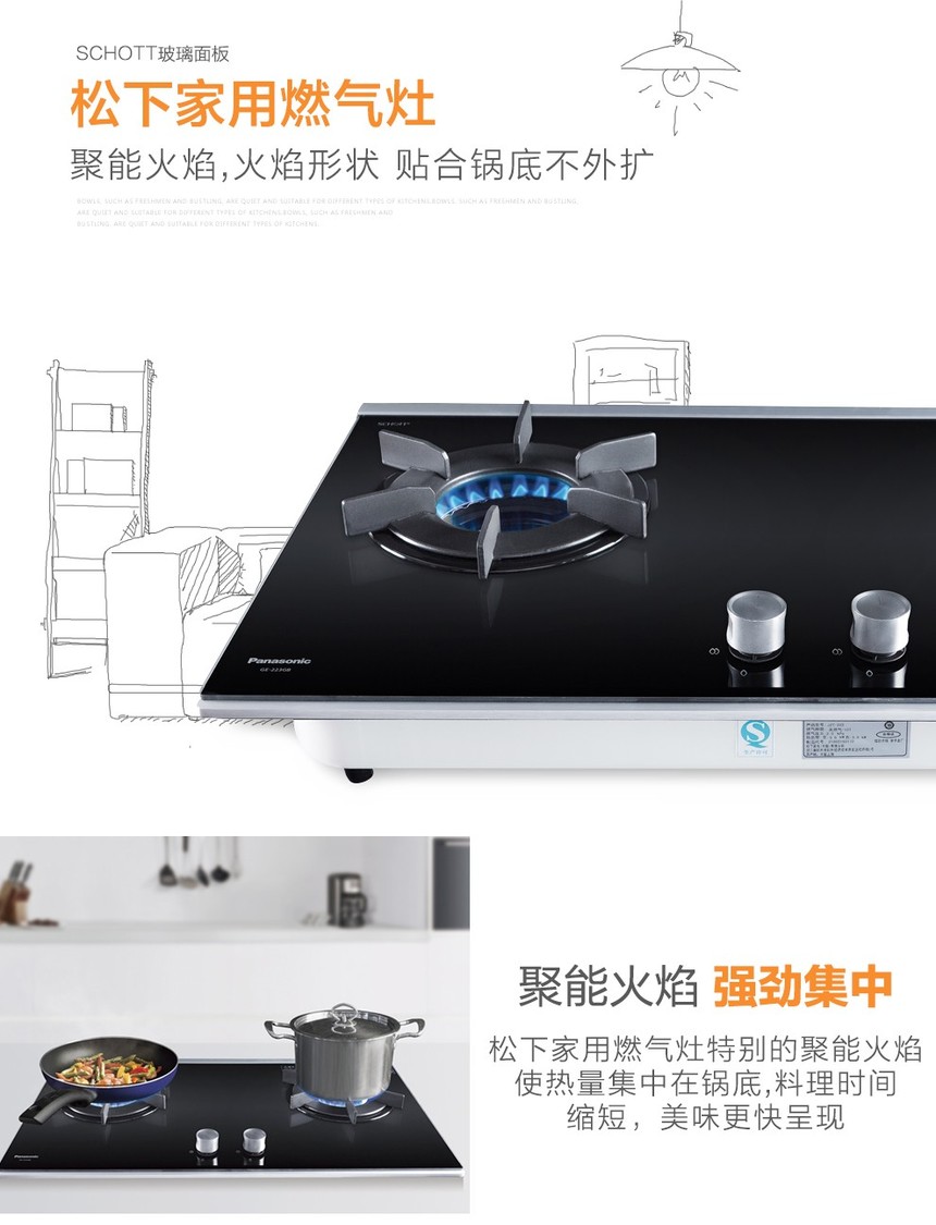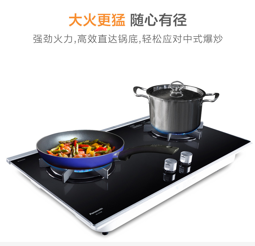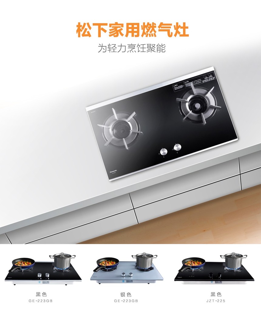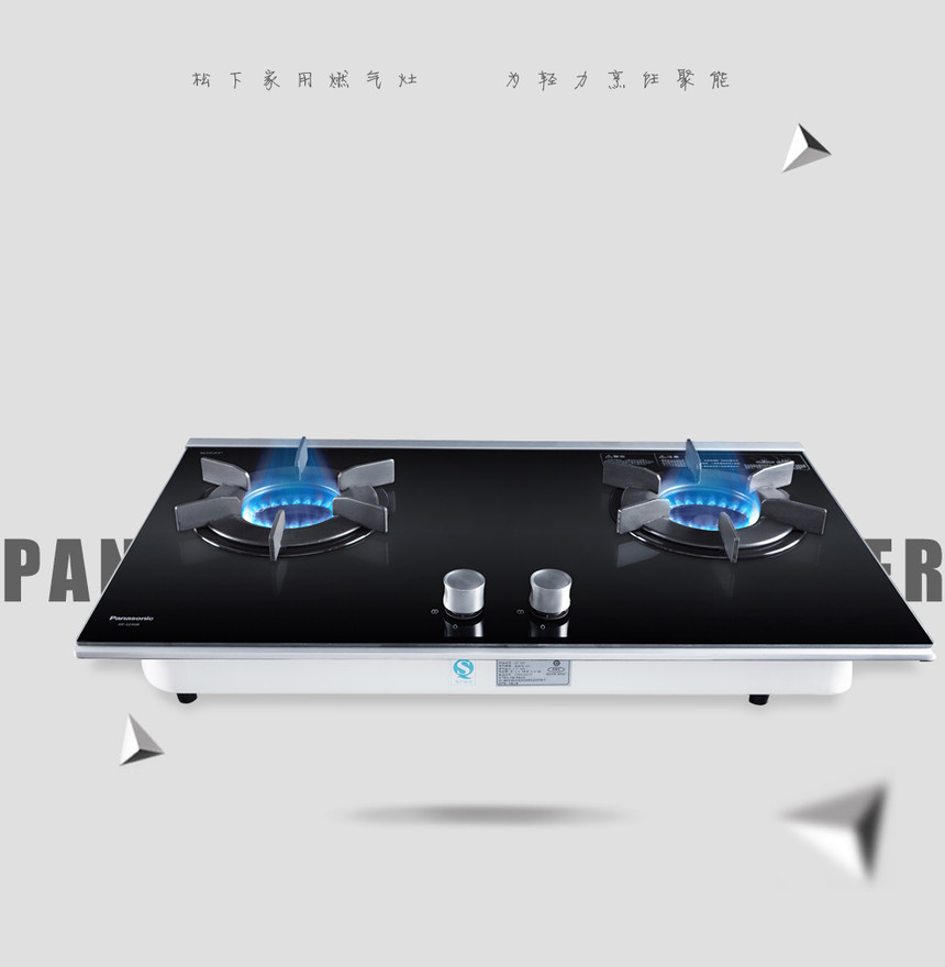 松下(Panasonic)家用嵌入式燃气灶(天然气) 双灶 聚能火 3.8KW大火力 GE-225GB【黑色】