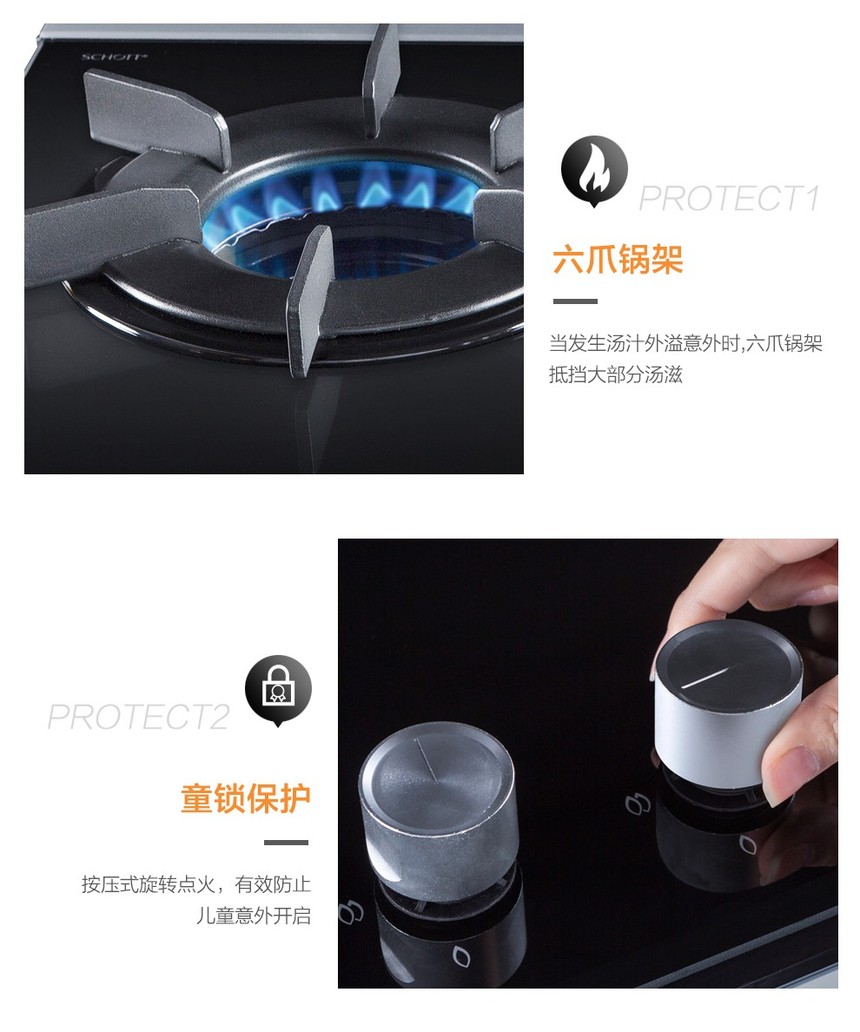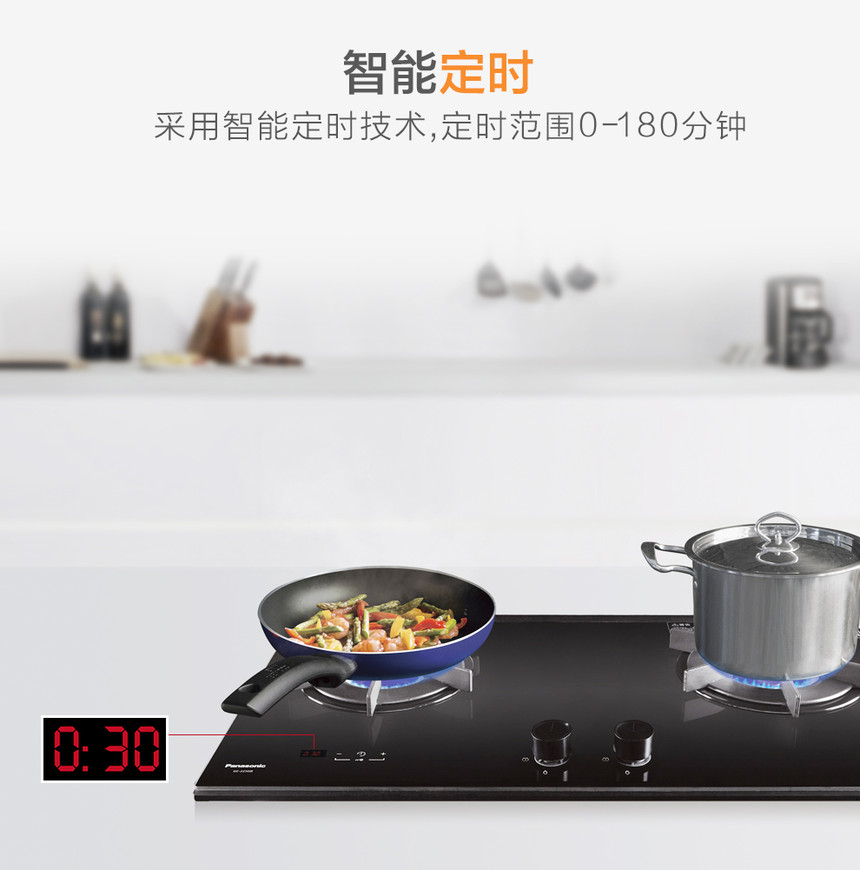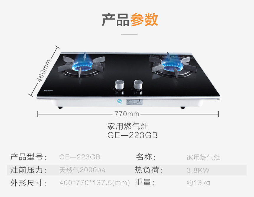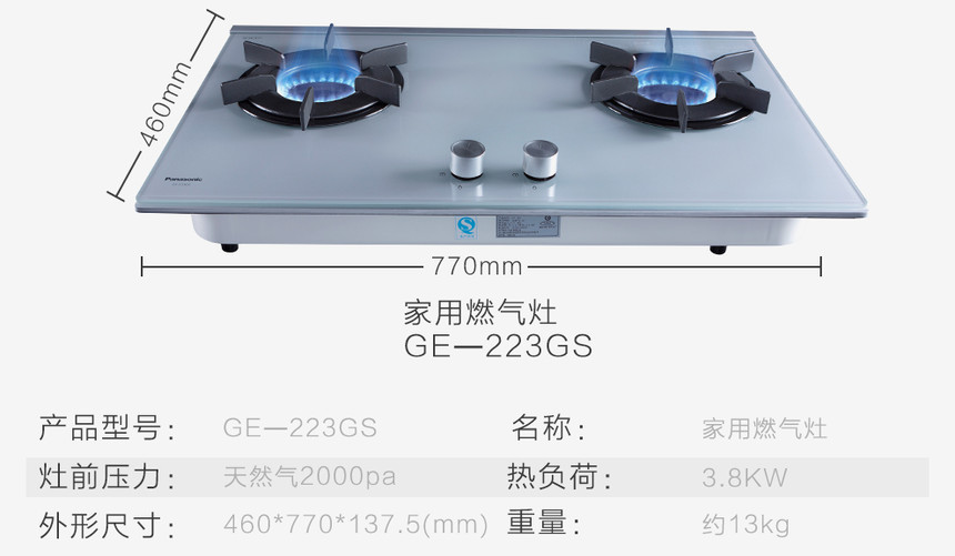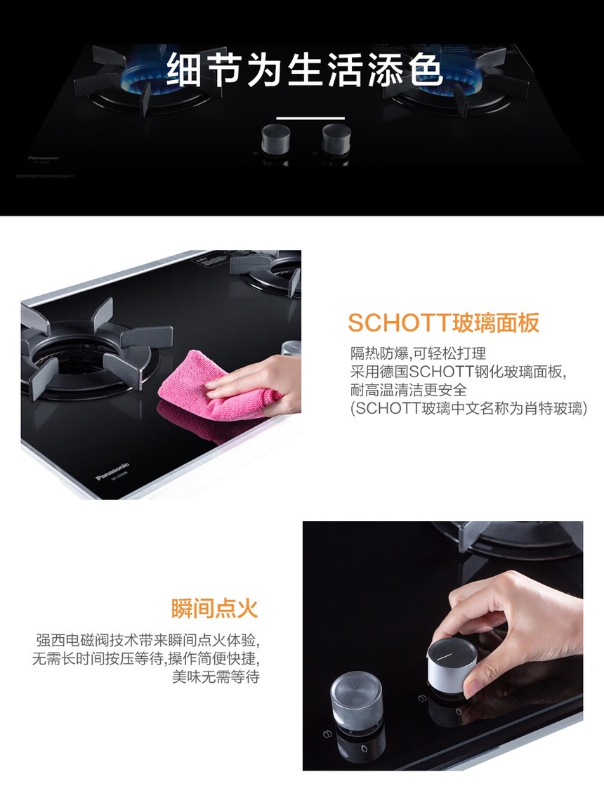 松下(Panasonic)家用嵌入式燃气灶(天然气) 双灶 聚能火 3.8KW大火力 GE-225GB【黑色】