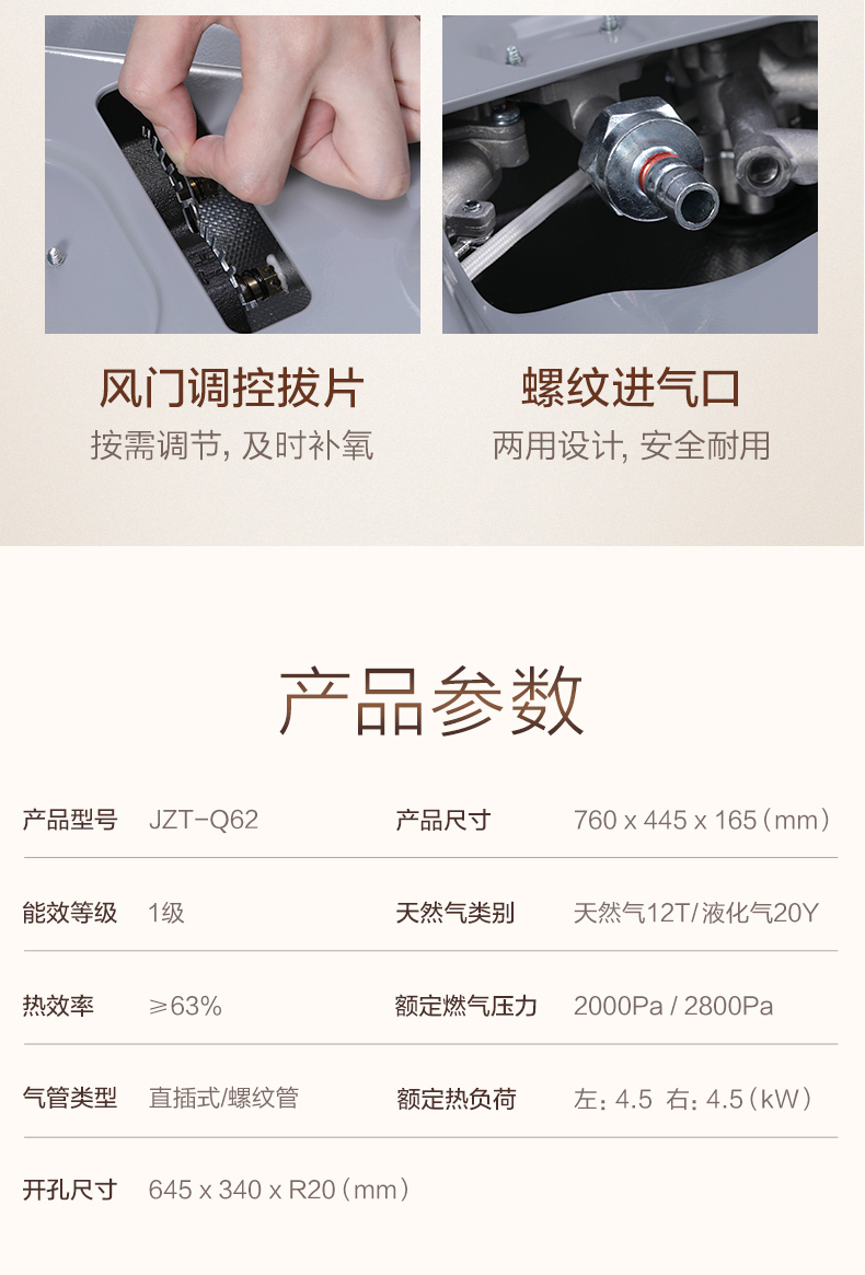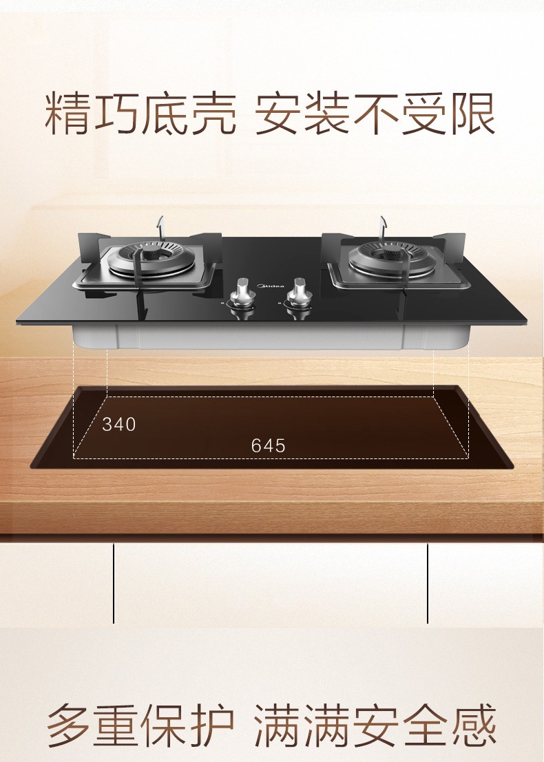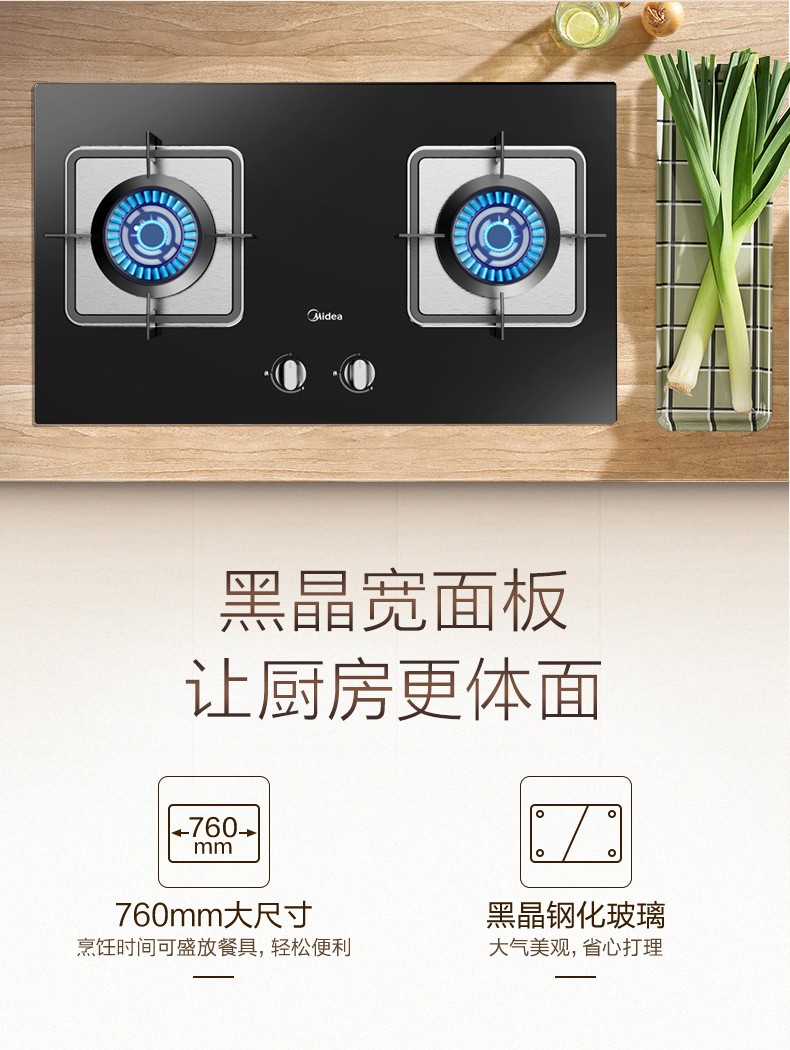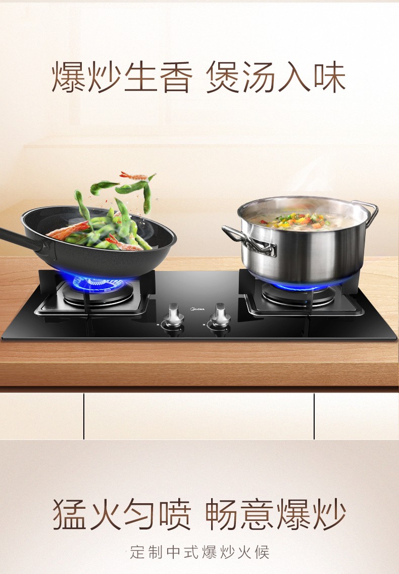 美的(Midea)一级能效4.5大火力燃气灶Q62 嵌入式燃气炉具灶具 钢化玻璃双灶台 钢化玻璃 天然气