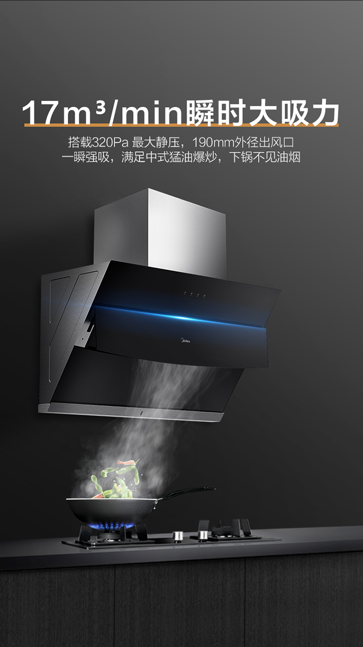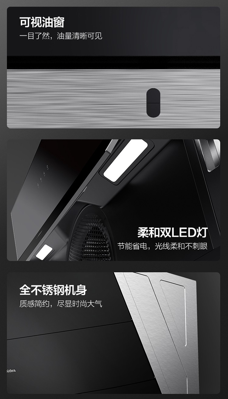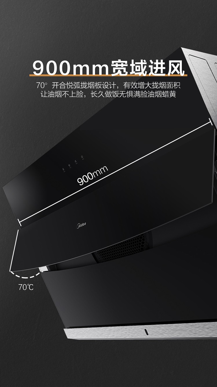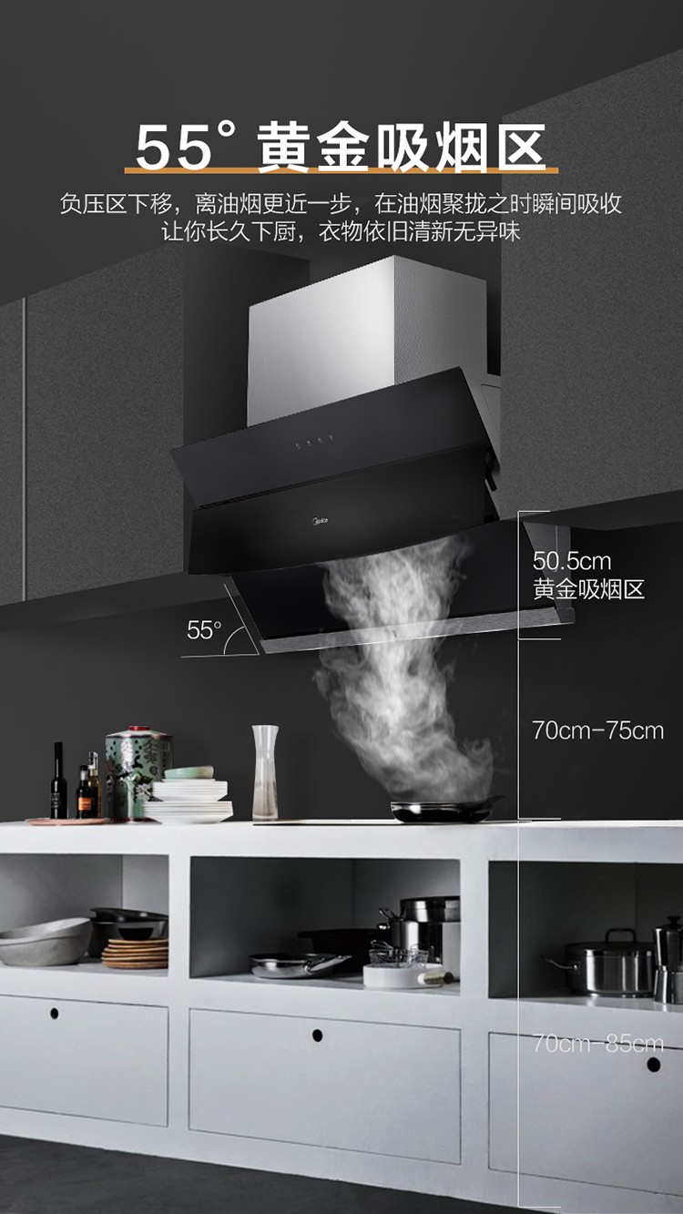 美的(Midea)经典欧式不锈钢抽油烟机17立方大吸力宽屏拢烟CXW-220-B81