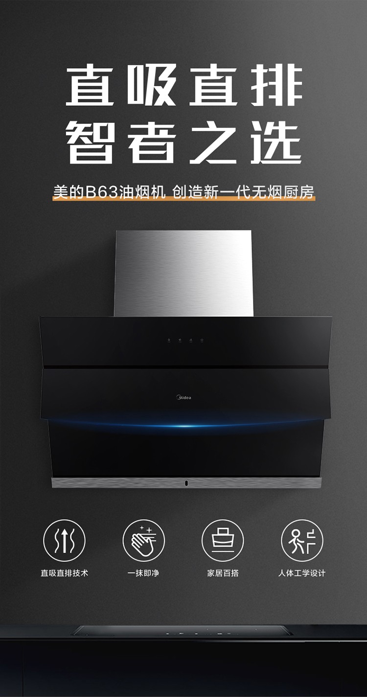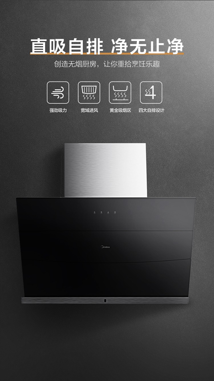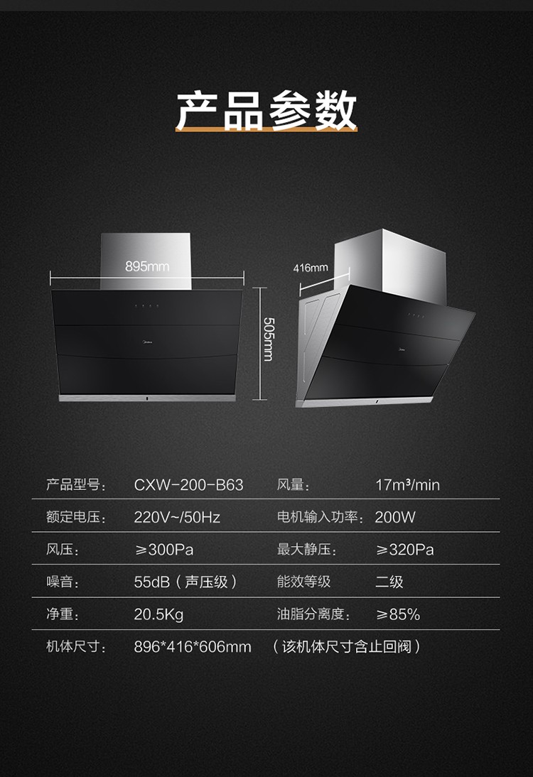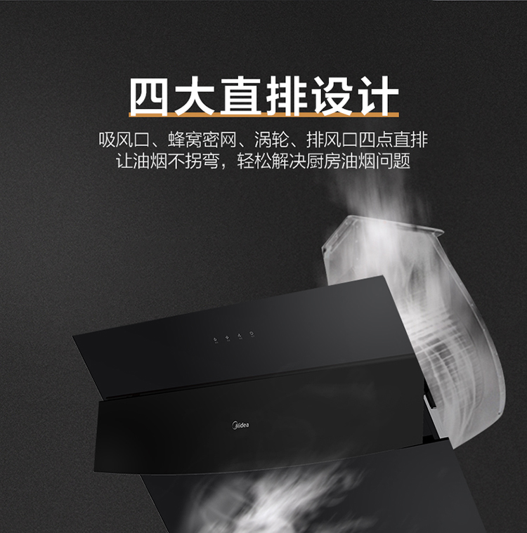 美的(Midea)经典欧式不锈钢抽油烟机17立方大吸力宽屏拢烟CXW-220-B81