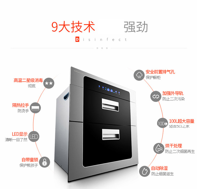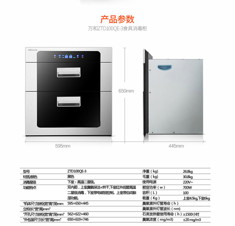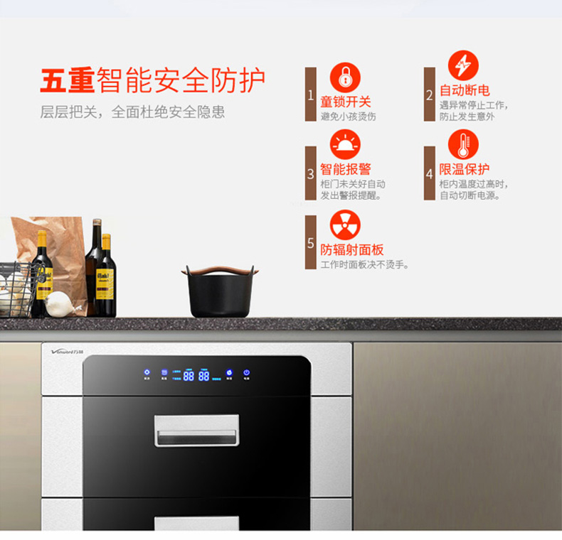 万和(Vanward)100升童锁嵌入式消毒柜臭氧带烘干除湿ZTD100QE-3 灰色